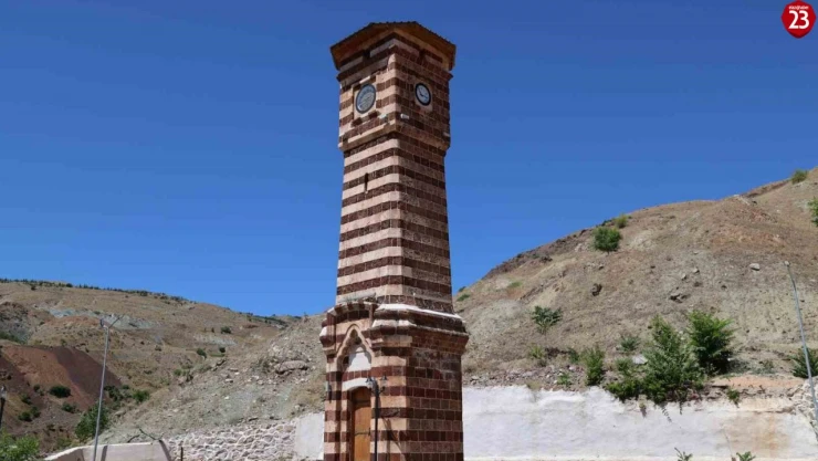 1899 yılında Sultan II. Abdülhamid’in tahta çıkışının 25’inci senesine özel Maden ilçesinde yapılan saat kulesi, turizme hizmet ediyor. 25’inci yıla özel 25 sıra kesme ve 25 sıra cüruf taşı ile yapılan yapı bir zamanlar yıkılmaya yüz tutsa da 2018 yılında Kültür ve Turizm Bakanlığı tarafından restore edildi. Doğu ve Güneydoğu Anadolu Bölgesi’nde bugüne ulaşan tek saat kulesi olarak dikkat çeken yapı, ilçe turizminin önemli yapısı olarak dikkat çekiyor.