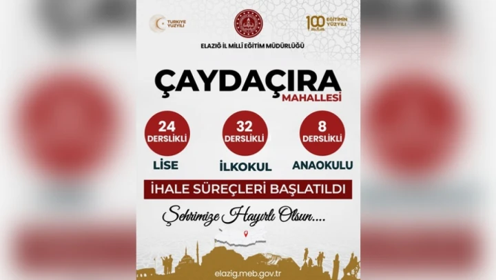 Şehrin eğitim altyapısını güçlendirecek bu yatırımların, hem Çaydaçıra Mahallesi'nde yaşayan vatandaşların hem de Elazığ'ın genel eğitim ihtiyaçlarını karşılamada önemli bir katkı sunması bekleniyor.