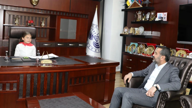 Elazığ Belediye Başkanı Şahin Şerifoğulları, 23 Nisan Ulusal Egemenlik ve Çocuk Bayramı dolayısıyla koltuğunu Namık Kemal İlkokulu 4'üncü sınıf öğrencisi minik Elçin Zeynep Tutar'a bıraktı.