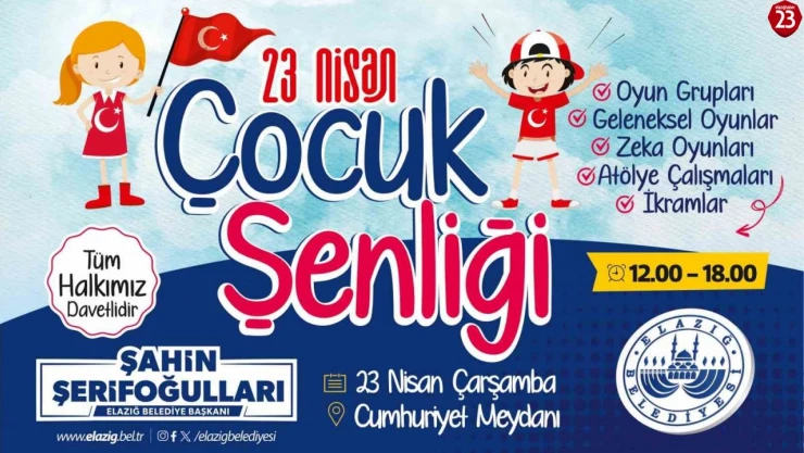 “Tüm dünyada geleceğin mimarları olan çocuklara armağan edilen tek bayram olan 23 Nisan Ulusal Egemenlik ve Çocuk Bayramı’nı Elazığ’da coşkuyla kutlayacağız. Renkli aktivitelerle çocuklarımızın doyasıya eğleneceği şenliğe, tüm çocuklarımızı ve ailelerini bekliyoruz.”