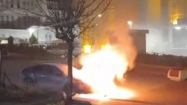 Elazığ'da otomobil alev alev yandı
