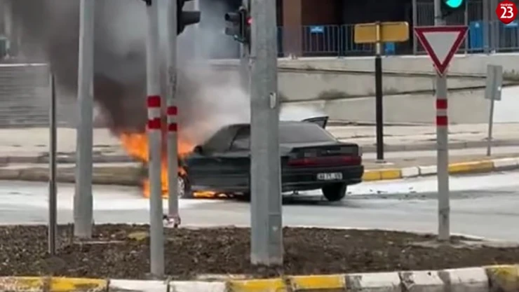 Elazığ merkez Atatürk Bulvarı'nda seyir halindeki bir otomobil, motor kısmından çıkan alevlerle yanmaya başladı.