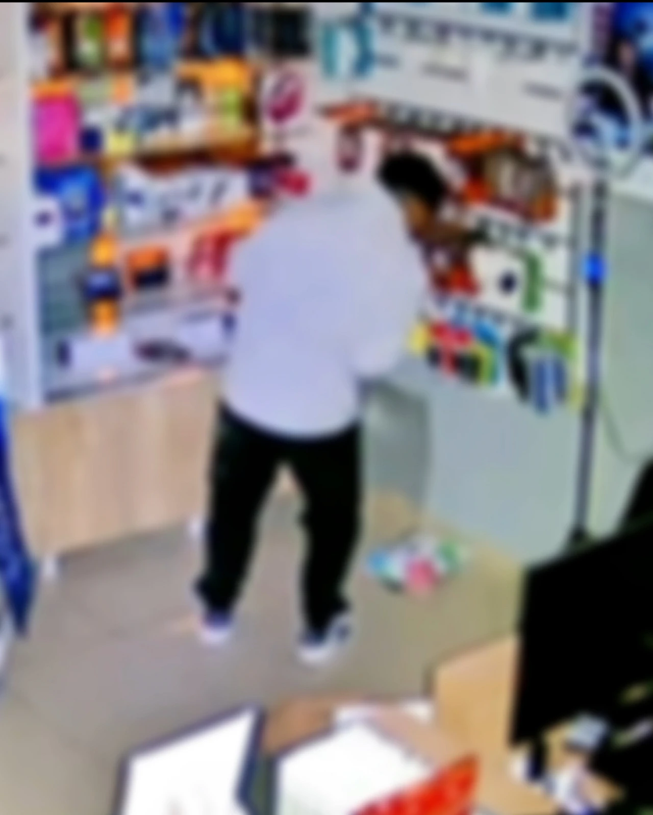 Güvenlik kamerasına yansıyan görüntülere göre, hırsız önce vitrinde sergilenen cep telefonlarını çaldı. Ardından kasada bulunan nakit parayı da alarak toplam 6 dakika içinde dükkândan uzaklaştı.