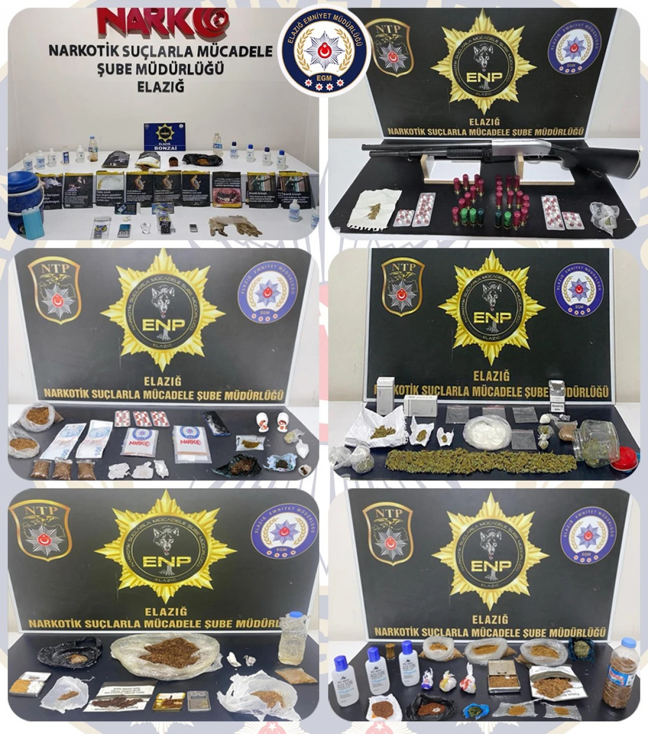 Elazığ Cumhuriyet Başsavcılığı koordinesinde yürütülen uyuşturucu ile mücadele çalışmaları kapsamında, İl Emniyet Müdürlüğü Narkotik Suçlarla Mücadele ve Asayiş Şube Müdürlüğü ekipleri son bir ayda geniş çaplı operasyonlar gerçekleştirdi.