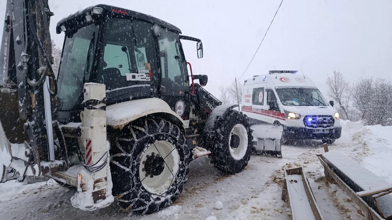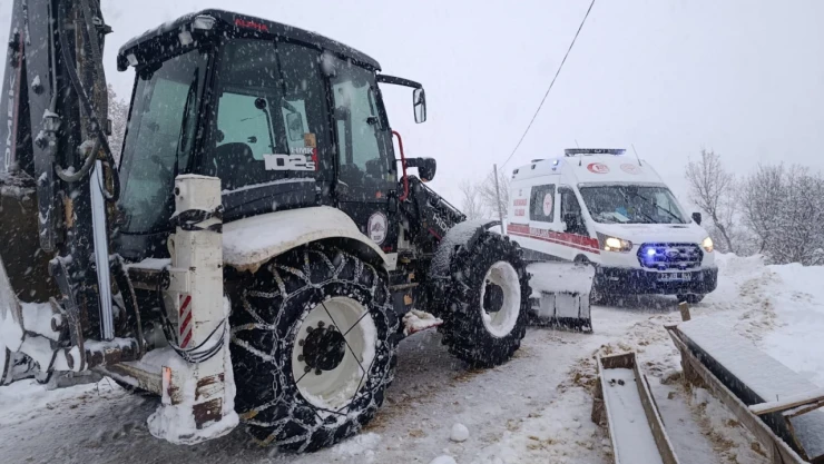 Edinilen bilgilere göre, köy yolunda ilerlemekte güçlük çeken ambulans, olumsuz yol koşulları nedeniyle yolda kaldı.