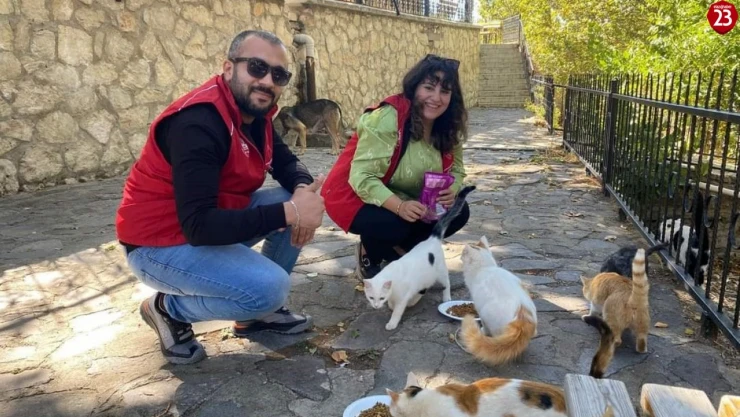Elazığ Gençlik Merkezi uyum ekipleri, sokak hayvanlarının yaşam şartlarını iyileştirmek, farkındalık oluşturmak ve aç kalmamaları için mama dağıtımı gerçekleştirdi.