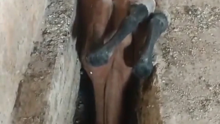 Elazığ Belediyesi İtfaiye Müdürlüğü ekipleri, merkeze bağlı Örençay köyünde yaşanan olayda ahır içerisine düşerek sıkışan bir atı kurtardı.