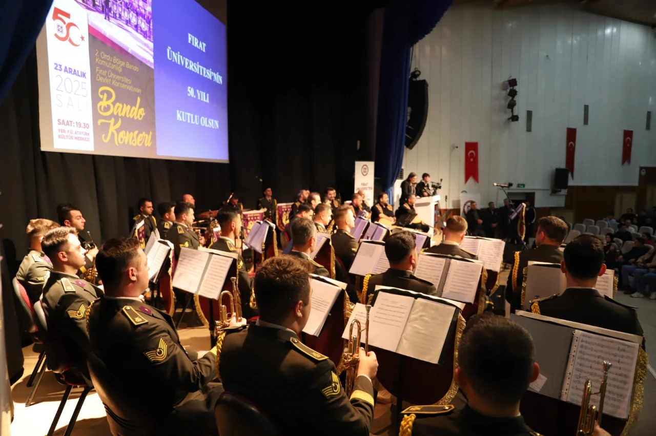 Fırat Üniversitesi'nin kuruluşunun 50. yıl dönümü etkinlikleri kapsamında, Malatya 2. Ordu Bölge Bando Komutanlığı ile Fırat Üniversitesi Devlet Konservatuvarı iş birliğinde düzenlenen ortak konser, sanatseverlere unutulmaz bir müzik ziyafeti sundu.