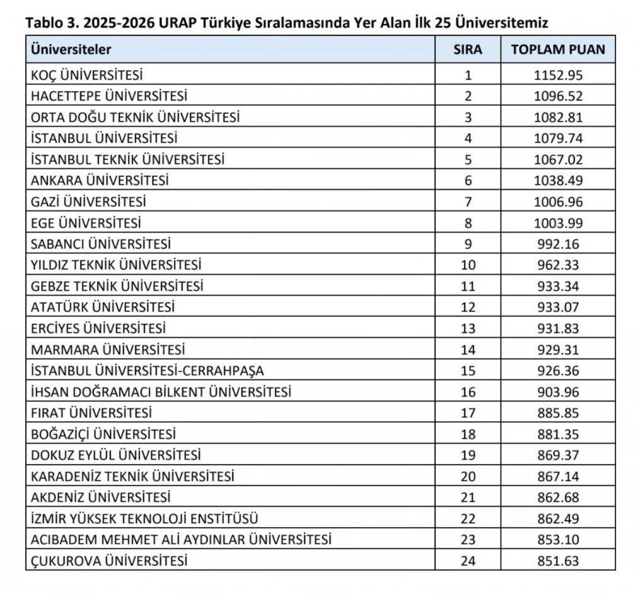 “Fırat Üniversitesi olarak ülkemizin köklü yükseköğretim kurumları arasında yer almanın haklı gururunu yaşıyoruz. URAP 2025-2026 sıralamasında elde ettiğimiz 17’ncilik, akademik üretkenliğe, bilimsel araştırmalara ve kalite odaklı eğitime verdiğimiz önemin somut bir göstergesidir. Üniversitemiz, son beş yılda istikrarlı bir şekilde yükselerek Türkiye’nin önde gelen üniversiteleri arasındaki yerini pekiştirmiştir.”