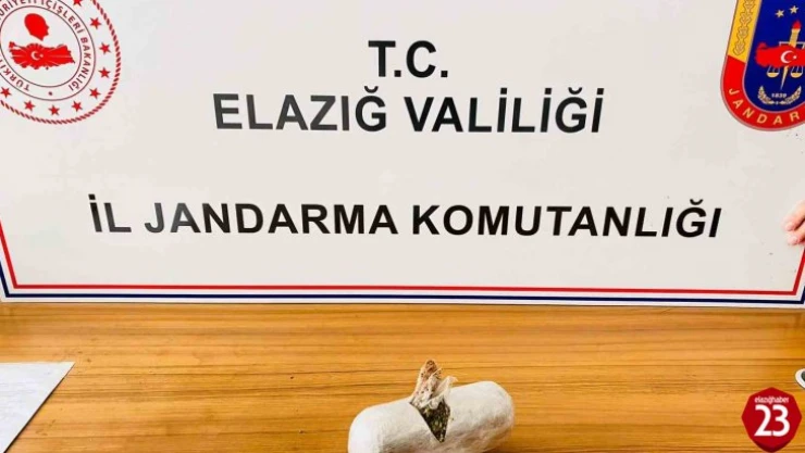 Elazığ'da jandarma ekiplerinin yaptığı çalışmada, narkotik köpeğinin tepki vermesi sonucu bir şüpheli üzerinde 220 gram esrar ele geçirildi. Şüpheli şahıs gözaltına alındı.