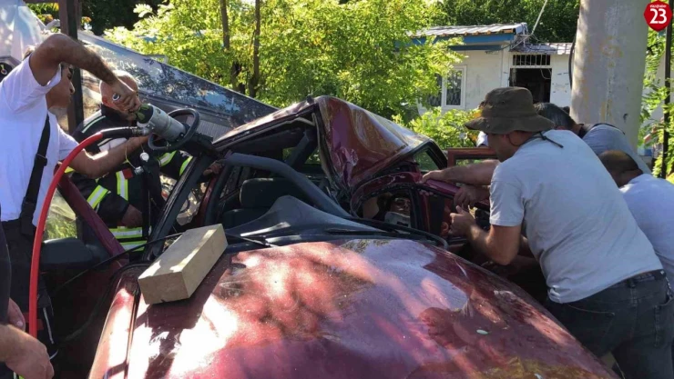 Elazığ'da sürücüsünün direksiyon hakimiyetini kaybetmesi sonucu elektrik direğine çarparak duran otomobilde sıkışan sürücü, itfaiye ekiplerinin 1 saatlik çalışması sonucu sıkıştığı yerden kurtarıldı.