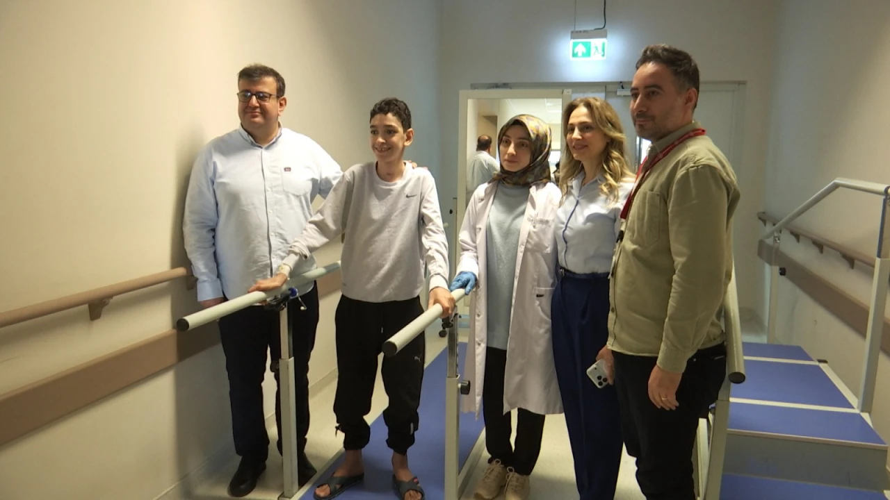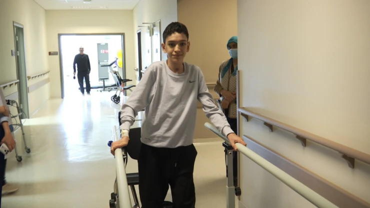 Bingöl'de 2 yıl önce nadir görülen otoimmün miyelit (omurilik iltihaplanması) tanısı konulan 14 yaşındaki Aziz Enül, Elazığ Fethi Sekin Şehir Hastanesi'nde uygulanan tedavilerin ardından 2 yılın sonunda destekli şekilde yürümeye başladı.