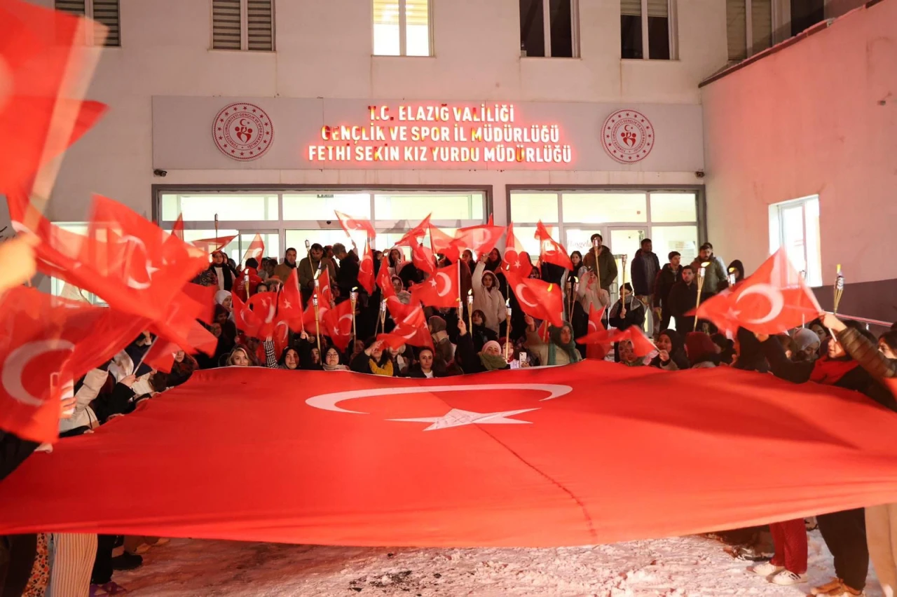 Nusaybin–Kamışlı sınır hattında Türk bayrağına yönelik gerçekleştirilen saldırının ardından, Elazığ Gençlik ve Spor İl Müdürlüğüne bağlı Şehit Fethi Sekin Öğrenci Yurdu’nda kalan öğrenciler anlamlı bir etkinliğe imza attı.