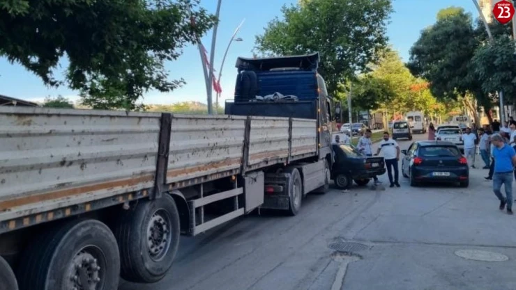 Elazığ'da tır ile otomobilin çarpması sonucu şans eseri yaralanan olmazken, o anlar güvenlik kameralarına yansıdı.